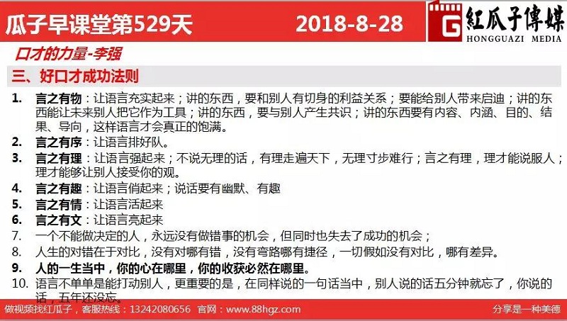 早課堂是由紅瓜子傳媒部分員工和喜歡學習提升自己的小伙伴組織的學習團隊,在每周一至周五早上7:40分開始至8:40進行一個60分鐘學習和自我提升的課堂。期待更多的小伙伴加入我們。
