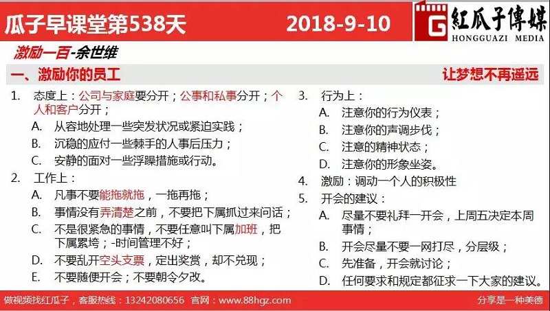 早課堂是由紅瓜子傳媒部分員工和喜歡學習提升自己的小伙伴組織的學習團隊,在每周一至周五早上7:40分開始至8:40進行一個60分鐘學習和自我提升的課堂。期待更多的小伙伴加入我們。