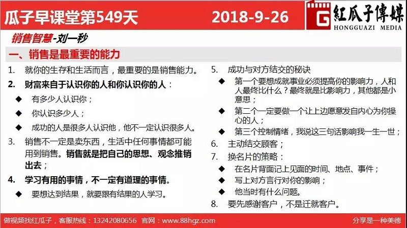 紅瓜子傳媒首頁(yè)>相關(guān)資訊>最新動(dòng)態(tài)>瓜瓜早課堂第548期-銷售是最重要的能力