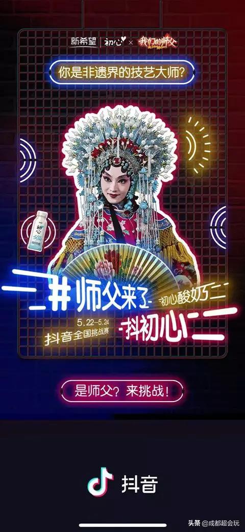 在成為大張偉、劉宇寧、董思成、于曉光、凱麗、倪萍、趙忠祥等明星指定飯桌飲品和下午茶之后,初心酸奶又轉(zhuǎn)戰(zhàn)抖音,發(fā)起一次全國尋找?guī)煾傅奶魬?zhàn)賽#師父來了抖初心,將節(jié)目IP的營銷價值最大化,再次賺足了曝光。