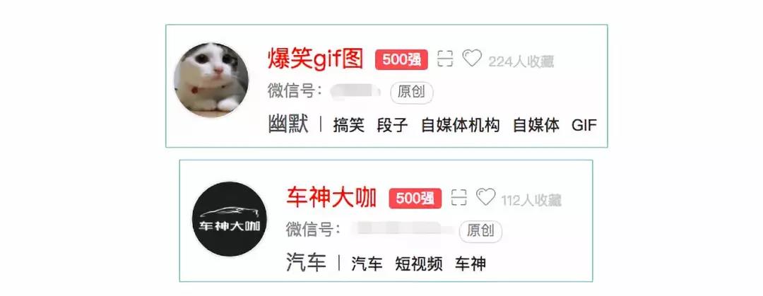 其中我們做的“爆笑gif圖”、“車神大咖“都是都是微信500強的賬號,在搞笑類別、汽車類別排名也都很靠前。