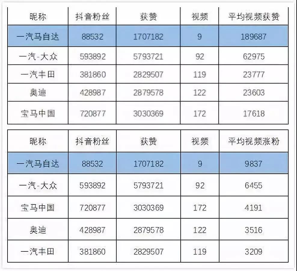 不管是從平均點(diǎn)贊數(shù)還是平均漲粉數(shù),一汽馬自達(dá)在同行業(yè)的賬號(hào)中都排名第一。