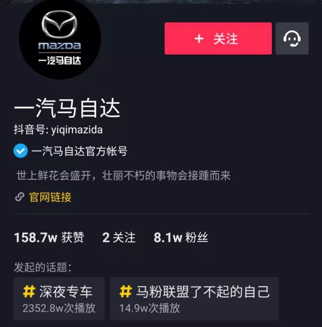 也希望“一汽馬自達(dá)”繼續(xù)改進(jìn)目前的劇情風(fēng)格,不久的將來(lái)成為抖音汽車(chē)品牌的一個(gè)頭部賬號(hào)!