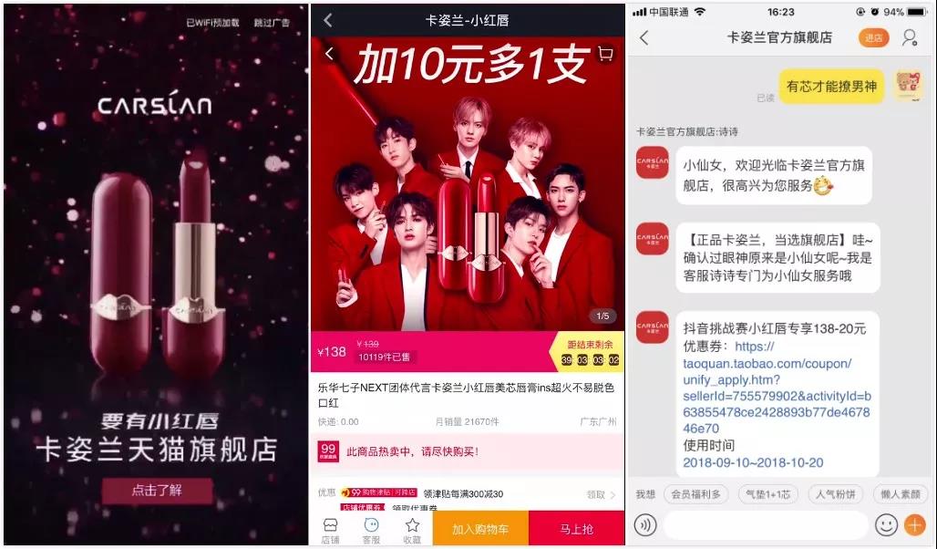 卡姿蘭Pick樂華七子為小紅唇站臺,正是看中樂華七子粉絲高昂的參與熱情。明星站臺+粉絲效應(yīng)加持,卡姿蘭小紅唇在抖音引起了種草浪潮。