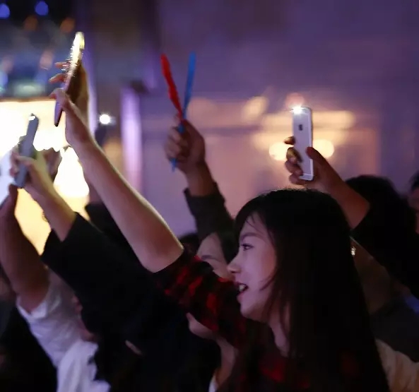 在表演的過程中,有件事讓我挺感動的。當音樂響起的時候,臺下有著一群人,開著手機的閃光燈,化身為熒光棒,隨著歌曲左右搖擺,激勵著她們,讓她們在臺上完成了演出,那是她們的家人——紅瓜子的同事們。那一刻我思緒萬千,感受到了相親相愛的力量。